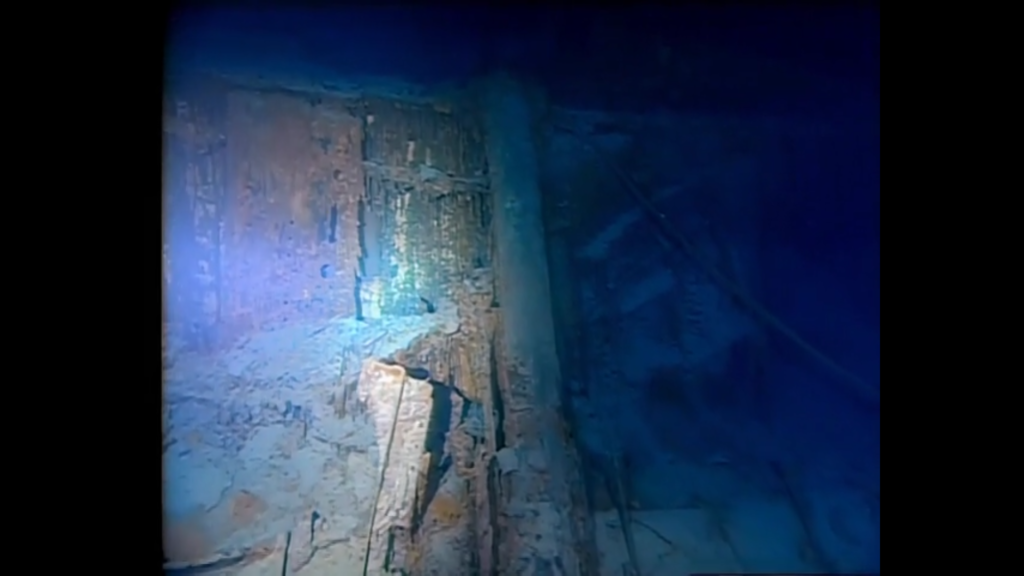 The real destructive force, however, appears to have been the downblast that resulted from the ship hitting the ocean floor with great force. This downward rush of water caused untold amounts of damage to the entire bow section, and it is likely that it completely destroyed the wooden structure of the Bridge, blasting it apart and downward.