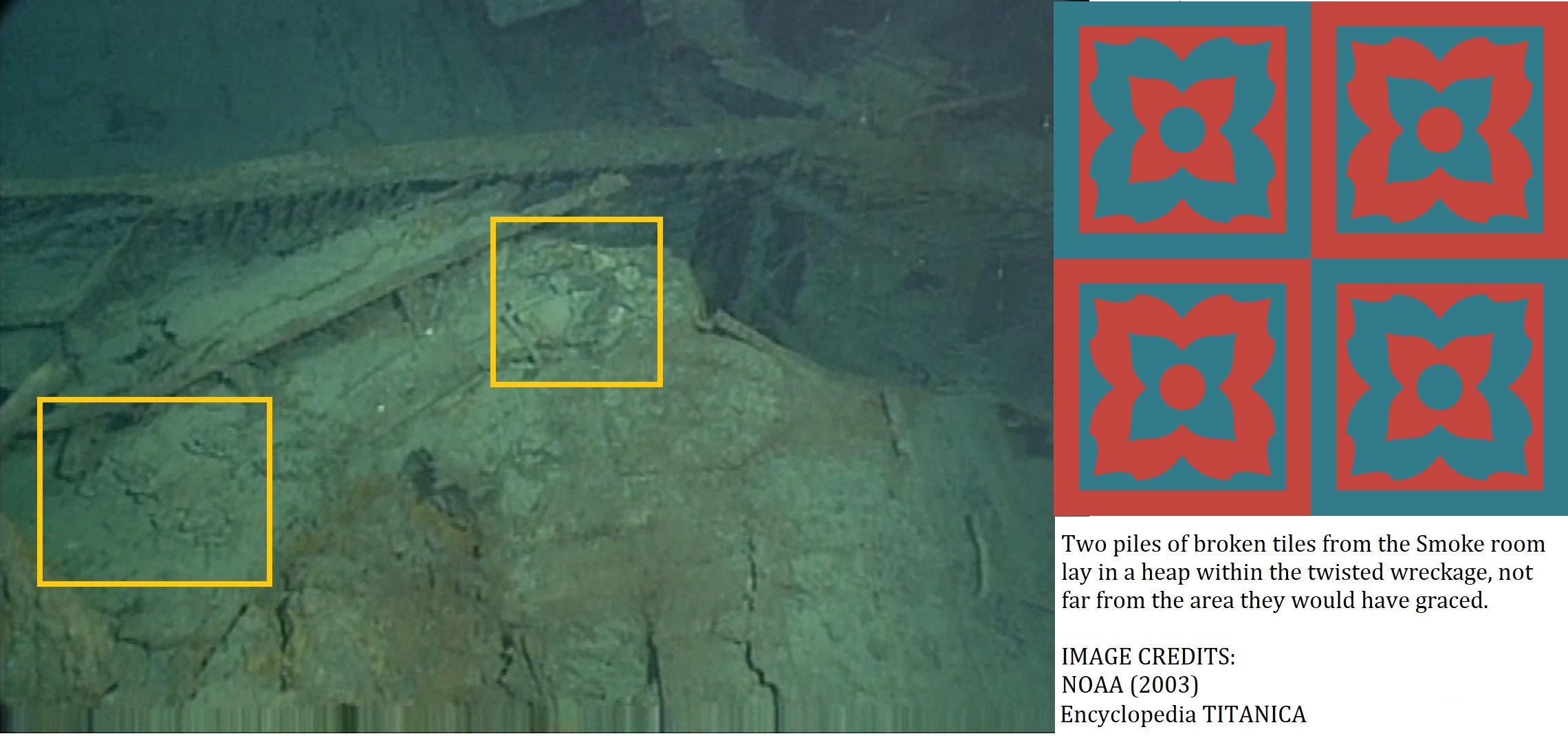 Located 1,970 feet (590m approx) due South of the Titanic’s bow, lay the mangled remains of the Titanic’s stern section. This area of the ship, the last part of the great vessel to vanish beneath the North Atlantic surface, was a honeycomb of compartments that included crew spaces, 2nd & 3rd class quarters, cargo storage, engineering areas, refrigeration, kitchens, as well as having several large areas for the ventilation of her engineering spaces as well.